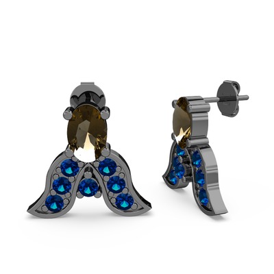 Dumanlı kuvars ve lab safir 925 ayar siyah rodyum kaplama gümüş küpe