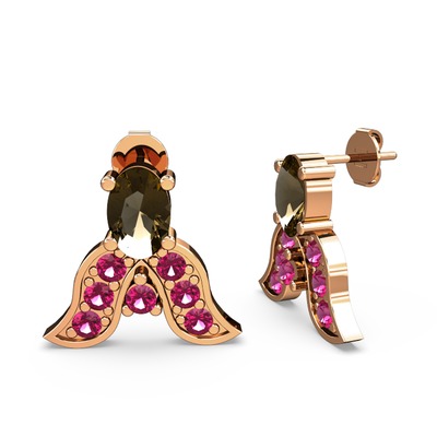 Dumanlı kuvars ve rodolit garnet 8 ayar rose altın küpe