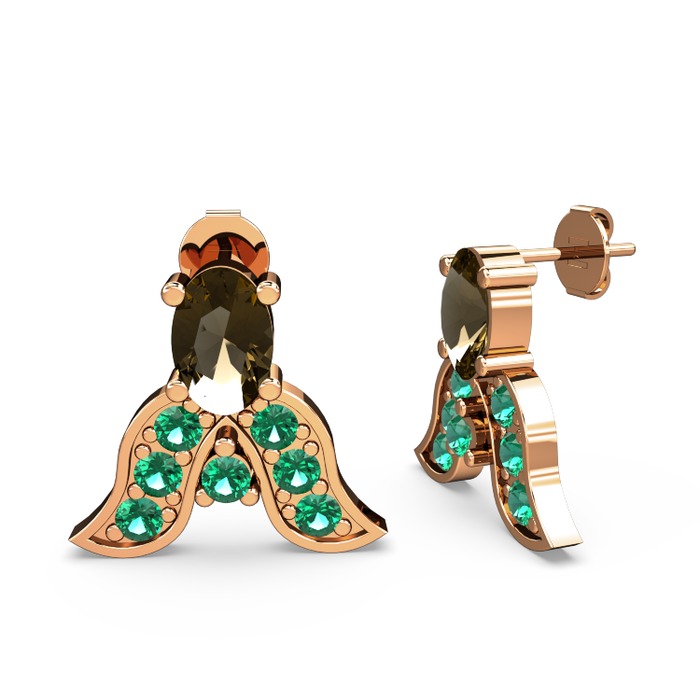 Dumanlı kuvars ve yeşil kuvars 8 ayar rose altın küpe