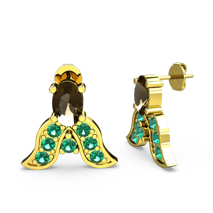 Dumanlı kuvars ve yeşil kuvars 925 ayar altın kaplama gümüş küpe