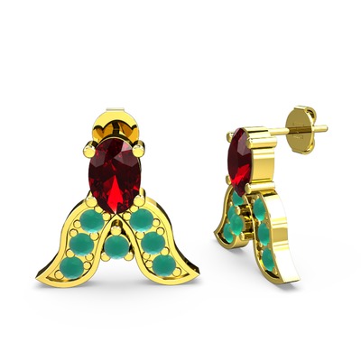 Garnet ve kök zümrüt 18 ayar altın küpe