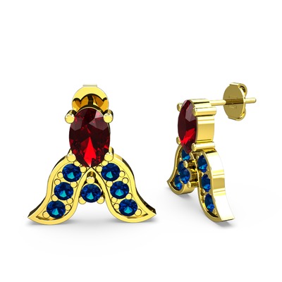 Garnet ve lab safir 925 ayar altın kaplama gümüş küpe