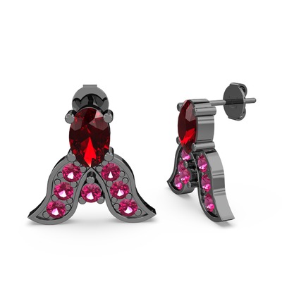 Garnet ve rodolit garnet 925 ayar siyah rodyum kaplama gümüş küpe