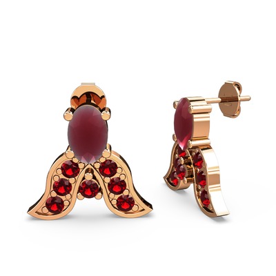 Kök yakut ve garnet 925 ayar rose altın kaplama gümüş küpe