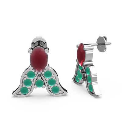 Kök yakut ve kök zümrüt 14 ayar beyaz altın küpe