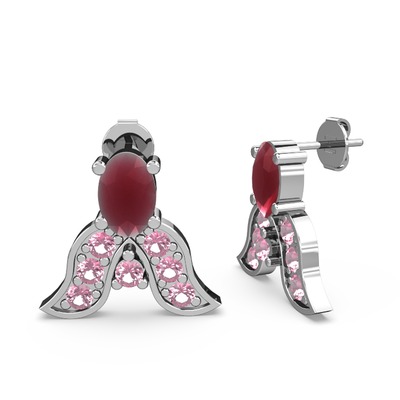 Kök yakut ve pembe kuvars 14 ayar beyaz altın küpe
