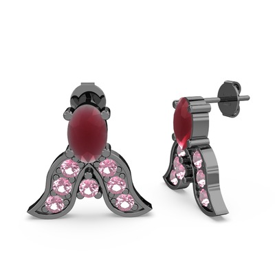 Kök yakut ve pembe kuvars 925 ayar siyah rodyum kaplama gümüş küpe