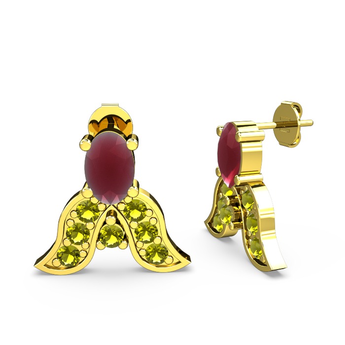 Kök yakut ve peridot 18 ayar altın küpe