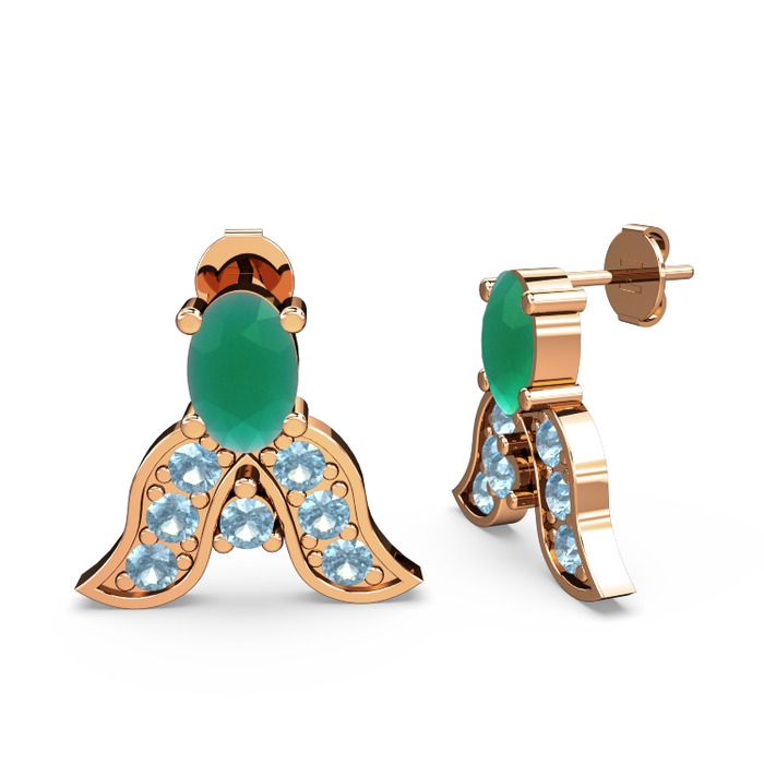 Kök zümrüt ve akuamarin 18 ayar rose altın küpe