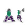 Kök zümrüt ve ametist 14 ayar beyaz altın küpe