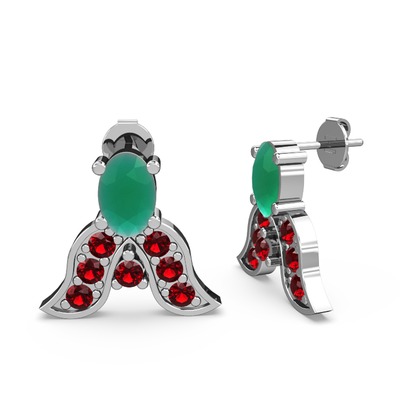 Kök zümrüt ve garnet 18 ayar beyaz altın küpe