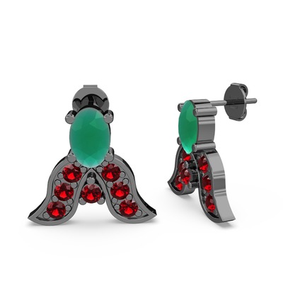 Kök zümrüt ve garnet 925 ayar siyah rodyum kaplama gümüş küpe