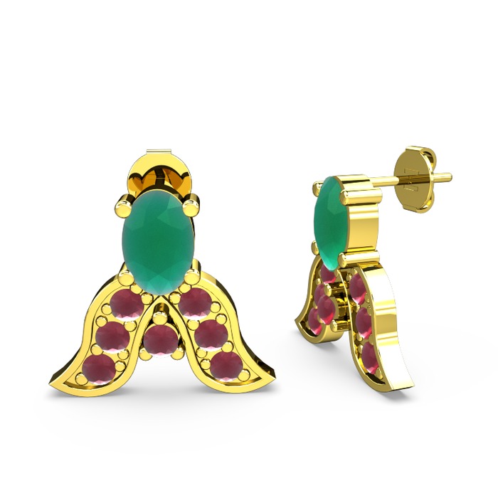 Kök zümrüt ve kök yakut 18 ayar altın küpe