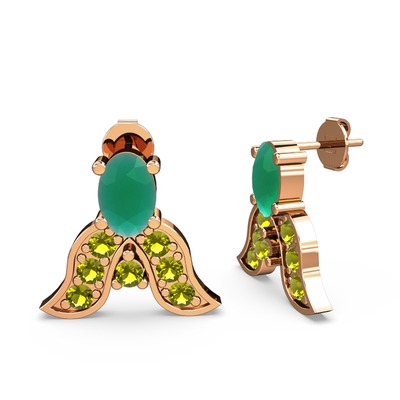 Kök zümrüt ve peridot 18 ayar rose altın küpe