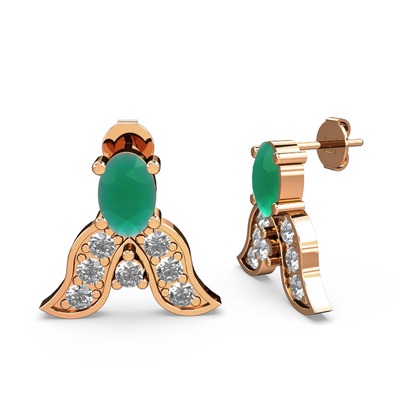 Kök zümrüt ve pırlanta 14 ayar rose altın küpe (0.504 karat)