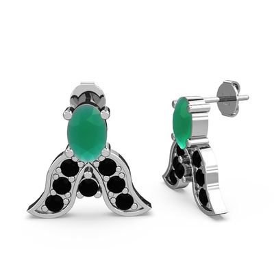 Kök zümrüt ve siyah zirkon 18 ayar beyaz altın küpe
