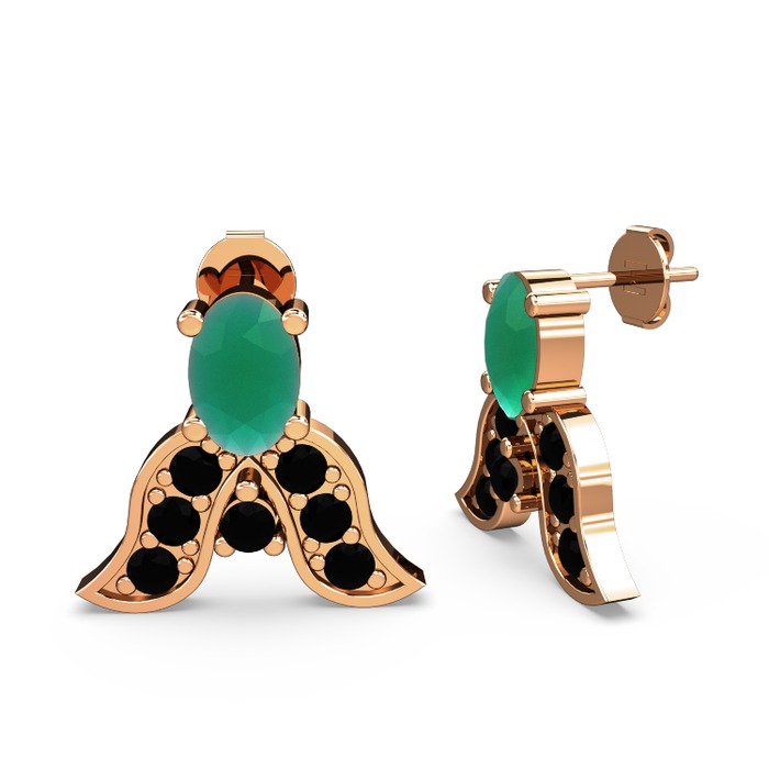 Kök zümrüt ve siyah zirkon 18 ayar rose altın küpe