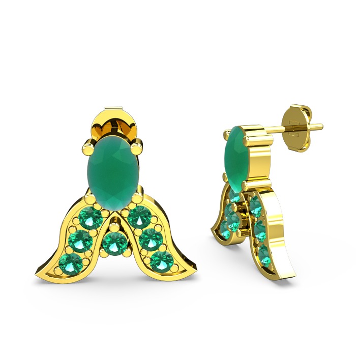 Kök zümrüt ve yeşil kuvars 18 ayar altın küpe
