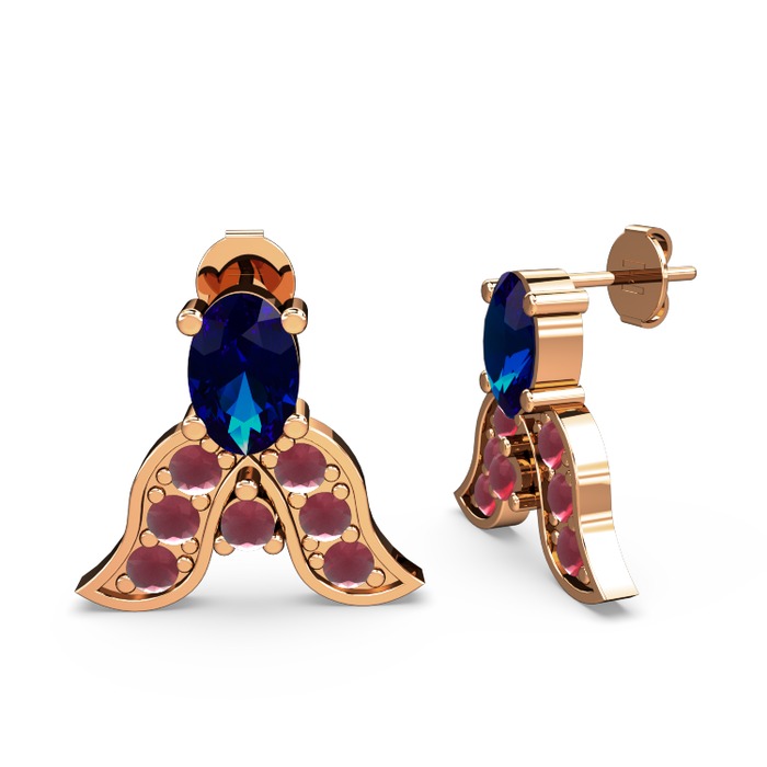 Lab safir ve kök yakut 8 ayar rose altın küpe