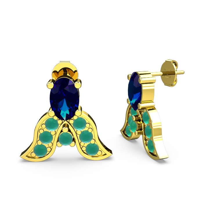 Lab safir ve kök zümrüt 925 ayar altın kaplama gümüş küpe