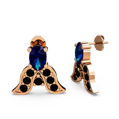 Lab safir ve siyah zirkon 18 ayar rose altın küpe