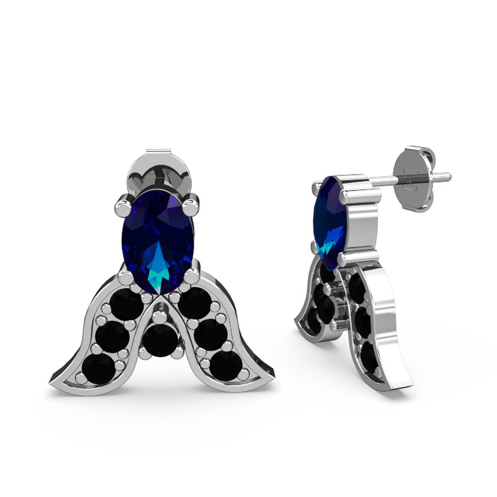Lab safir ve siyah zirkon 925 ayar gümüş küpe