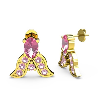 Pembe kuvars 8 ayar altın küpe