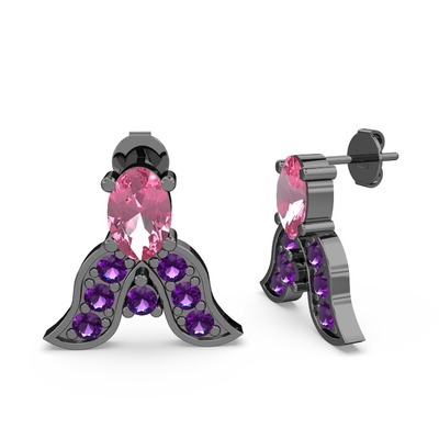 Pembe kuvars ve ametist 925 ayar siyah rodyum kaplama gümüş küpe