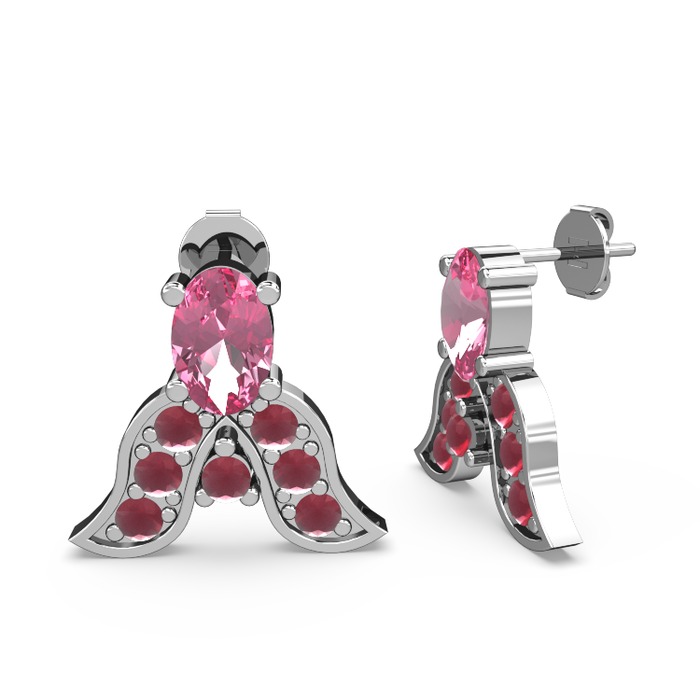 Pembe kuvars ve kök yakut 925 ayar gümüş küpe