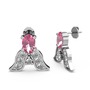 Pembe kuvars ve swarovski 18 ayar beyaz altın küpe