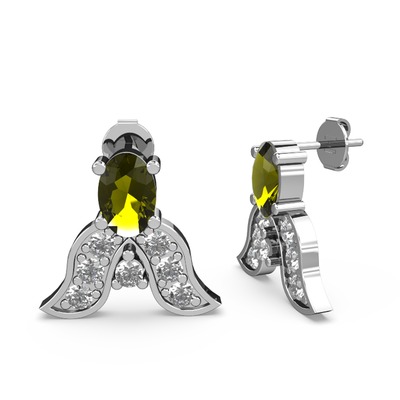 Peridot ve beyaz zirkon 8 ayar beyaz altın küpe