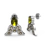 Peridot ve dumanlı kuvars 18 ayar beyaz altın küpe