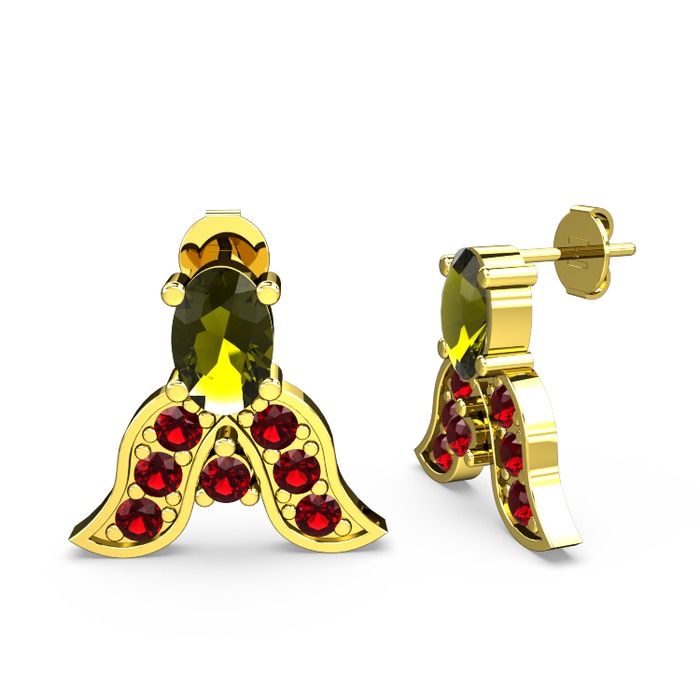 Peridot ve garnet 925 ayar altın kaplama gümüş küpe