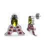 Peridot ve kök yakut 14 ayar beyaz altın küpe