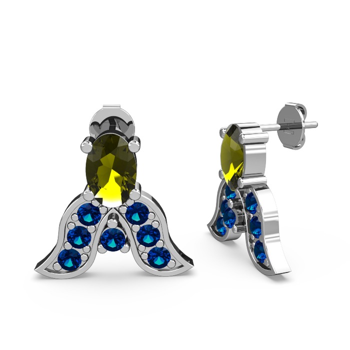 Peridot ve lab safir 14 ayar beyaz altın küpe