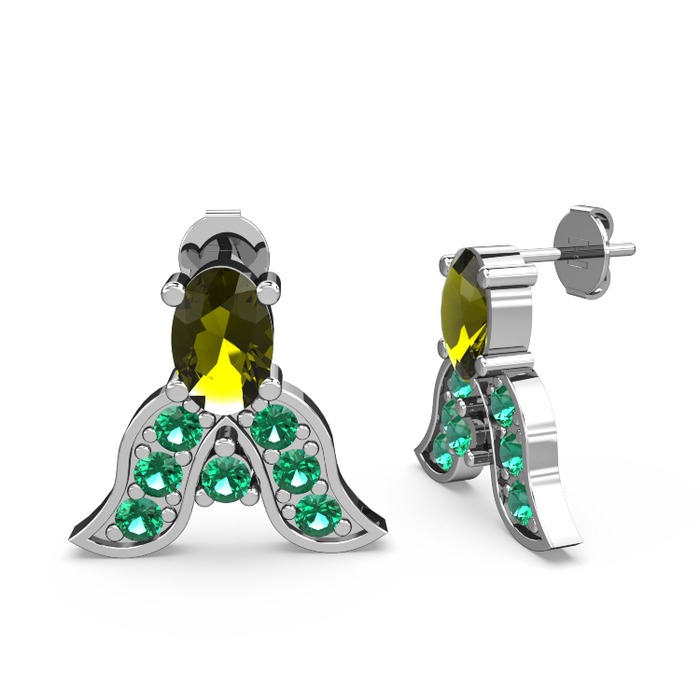 Peridot ve yeşil kuvars 14 ayar beyaz altın küpe