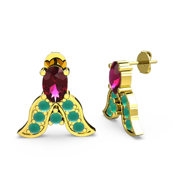 Rodolit garnet ve kök zümrüt 8 ayar altın küpe