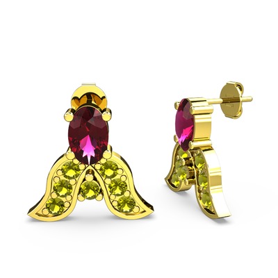 Rodolit garnet ve peridot 925 ayar altın kaplama gümüş küpe