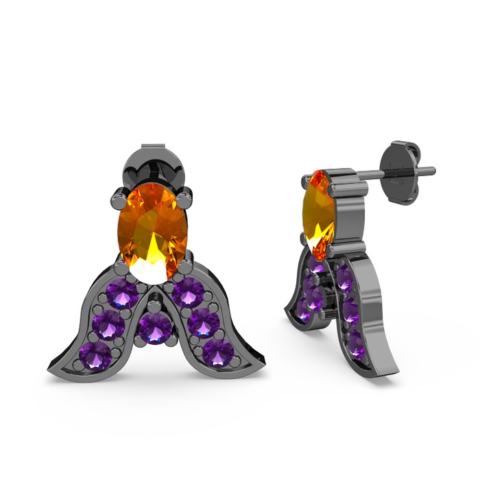 Sitrin ve ametist 925 ayar siyah rodyum kaplama gümüş küpe