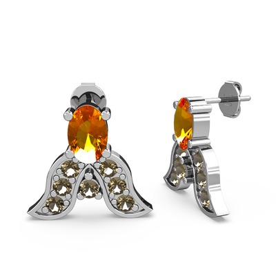 Sitrin ve dumanlı kuvars 14 ayar beyaz altın küpe