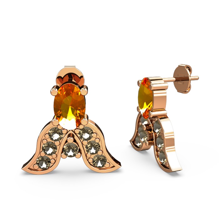 Sitrin ve dumanlı kuvars 8 ayar rose altın küpe