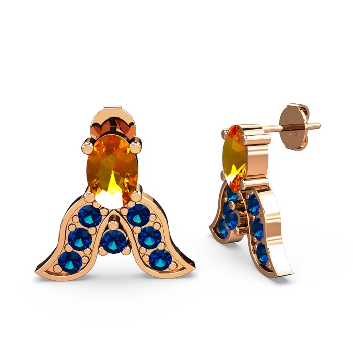 Sitrin ve lab safir 18 ayar rose altın küpe
