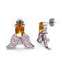 Sitrin ve pembe kuvars 8 ayar beyaz altın küpe