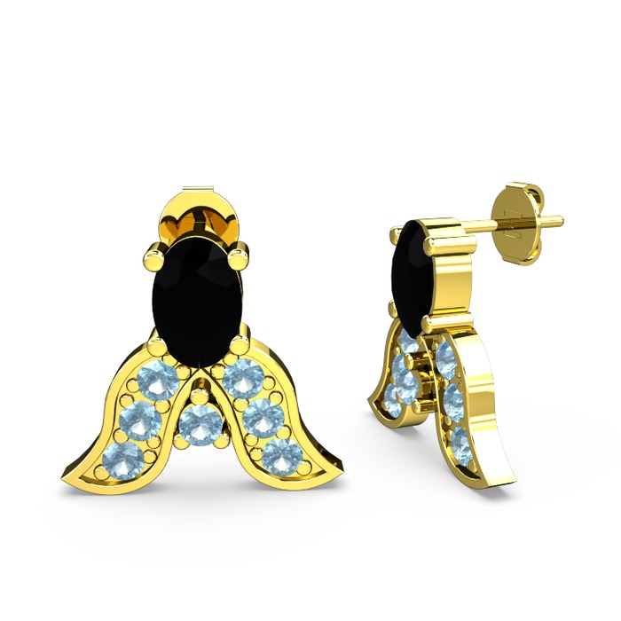 Siyah zirkon ve akuamarin 925 ayar altın kaplama gümüş küpe