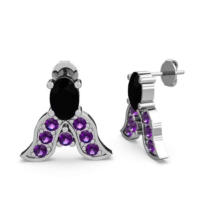 Siyah zirkon ve ametist 14 ayar beyaz altın küpe
