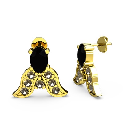 Siyah zirkon ve dumanlı kuvars 8 ayar altın küpe
