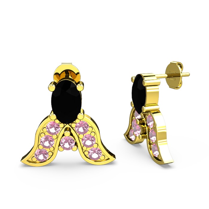 Siyah zirkon ve pembe kuvars 14 ayar altın küpe