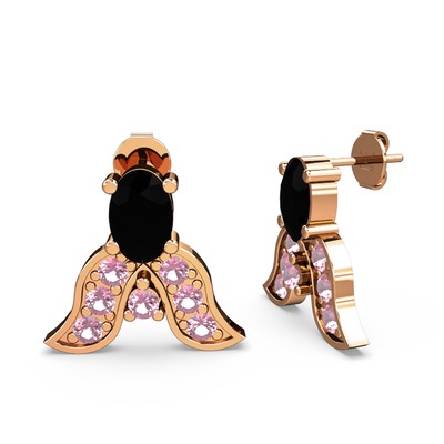 Siyah zirkon ve pembe kuvars 14 ayar rose altın küpe
