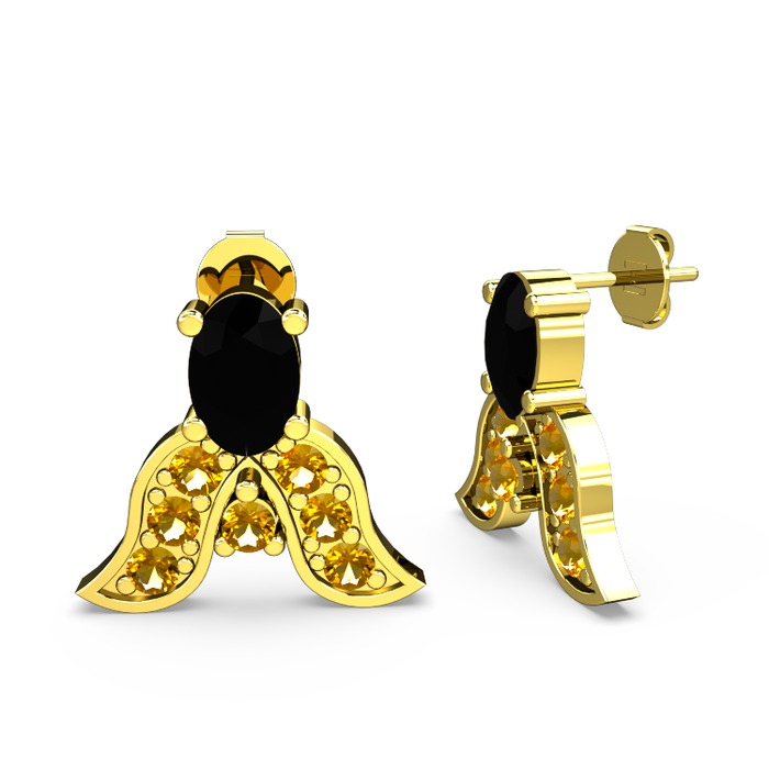 Siyah zirkon ve sitrin 14 ayar altın küpe
