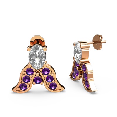Swarovski ve ametist 925 ayar rose altın kaplama gümüş küpe